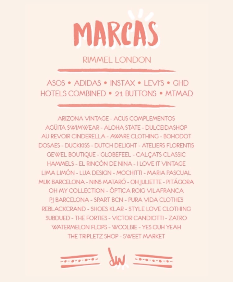 Este año en el festival estarán un montonazo de marcas súper guays como Arizona Vintage, Asos, Adidas, Dulceidashop, Au revoir cinderella, Levi’s, Maria Dosaes, Maria Pasqual…. y muchas muchas más! A mi me flipan todas y además la mayoría son online y en el festi tenemos la oportunidad de comprarlas, verlas en directo…etc. Debo ponerme a ahorrar YA 😂 Echadle un ojillo al cartel con todas las marquis 👇🏽