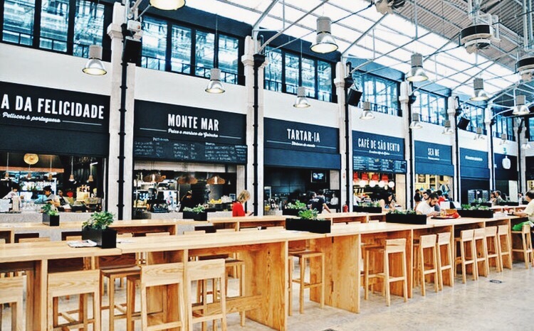 4. El mercado de Ribeira es otra parada obligatoria para llenar la barriguita jjj Es el mercado de moda en Lisboa hoy en día y hay un montón de puestos de venta de comida. Eliges y compras lo que te apetezca y te lo llevas a las mesas largas con taburetes que hay por todo el mercado, ¡hay comida para todos los gustos! Aunque suele estar petadísimo, pero rebuscad bien para encontrar algun huequete. ¡Vale la pena!